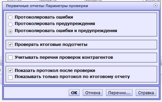 Действие предназначено для проверки значений отчета. При выборе действия появится окно параметров проверки.