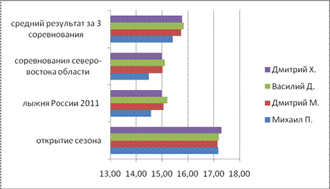Группа А во всех трех соревнованиях показала результаты, которые немного но всё же превзошли группу Б, т. к. группа А с мая по октябрь в свои тренировки включила занятия на лыжероллерах. Анализ результатов показанных группой А в сезонах (, ) говорит о том, что в сезоне результаты были выше в физическом и техническом плане. То же самое можно сказать и о группе Б, если сравнивать сезоны и , то несомненно видно, что спортсмены данной группы также прибавили в физических и технических качествах. Но всё же следует учесть, что у группы А результаты незначительно, но всё же выше и это говорит о том, что применение упражнений на лыжероллерах влияет не только на результат тренировочного процесса, но и позволяет улучшить результаты на соревнованиях.