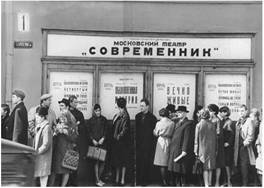 В период «оттепели» в культуру театра стремительно вошло поколение шестидесятников. По распоряжению министра культуры Екатерины Алексеевны Фурцевой открылся знаменитый московский театр на Таганке под руководством Юрия Петровича Любимова.