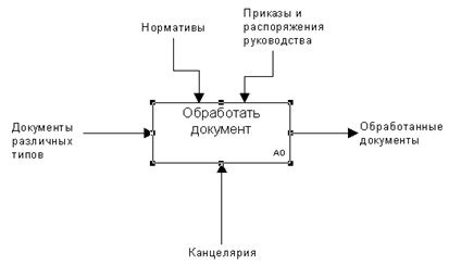 Для пояснения этой общей схемы приведем на рисунке 3 в качестве примера IDEF0 диаграмму для функции обработки документа государственным служащим.