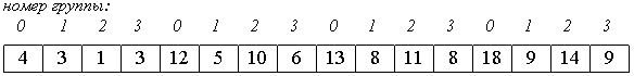 2. Потом сортируем каждую из четырех групп по 4 элемента (a[0], a[4], a[8], a[12]), ..., (a[3], a[7], a[11], a[15]).
