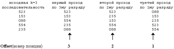 Итак, мы научились за (n + m) сортировать цифры. А от цифр до строк и чисел - 1 шаг. Пусть у нас в каждом ключе k цифр ( m =Аналогично случаю со списками отсортируем их в несколько проходов от младшего разряда к старшему.