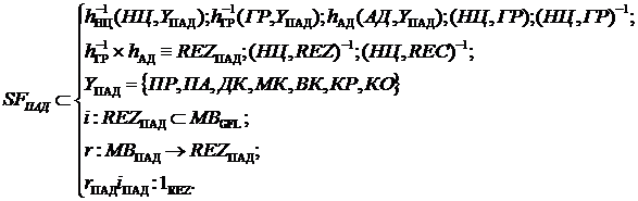 Выбор этой структуры определяется конструктивным подходом к наблюдениям. В данном случае (это следует из постановки задачи) целесообразно выделить каналы, определяющие процессы регуляции артериального давления. Тогда конкретный вид категории ФУС выглядит следующим образом [4]: