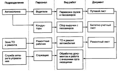 Результаты работы подразделений и персонала фиксируются в различных документах (путевые листы, ремонтные листы, ведомость выдачи топлива, требование на получение запасных частей и пр.). В настоящее время нет единых требований к составу и формам документов, однако их можно разделить (по типу хранимой в них информации) на три вида: нормативные, первичные и вторичные. Нормативными являются те документы, сведения в которых в течение некоторого периода остаются неизменными (периодичности ТО, нормы расхода топлива, складские номера деталей и т. п.). К первичным относятся те документы, в которых фиксируется информация о ходе текущей производственной деятельности (путевые листы, требования на ремонт и на получение запасных частей и т. д.). В них могут содержаться данные из нормативно-справочной документации. Ко вторичным относятся документы, содержащие результаты выборки и группировки данных из первичных документов (сведения о расходе запасных частей, ведомость премирования за экономию топлива, сводки о простоях автомобилей в ремонте и т. д.), нормативно-справочную и другую информацию.