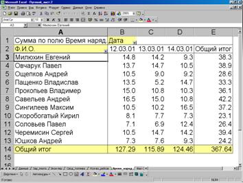 Рис. 5.8 Сводная таблица определения отработанного времени водителями