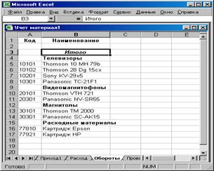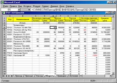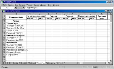 6.3. Учет материальных ценностей средствами MS Excel