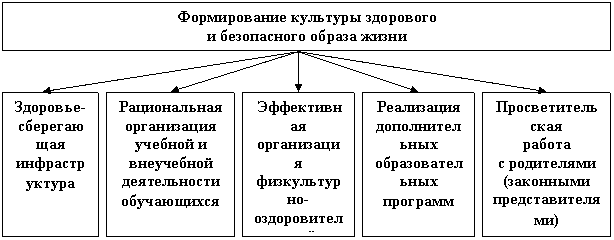 Системная работа на ступени начального общего образования по формированию культуры здорового и безопасного образа жизни может быть представлена в виде пяти взаимосвязанных блоков – по созданию здоровьесберагающей инфраструктуры, рациональной организации учебной и внеучебной деятельности обучающихся, эффективной организации физкультурно-оздоровительной работы, реализации образовательной программы и просветительской работы с родителями (законными представителями) и должна способствовать формированию у обучающихся ценности здоровья, сохранению и укреплению у них здоровья.