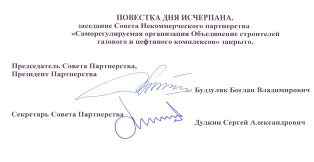 Заседания Совета Некоммерческого партнерства «Саморегулируемая организация Объединение строителей газового и нефтяного комплексов» правомочно.