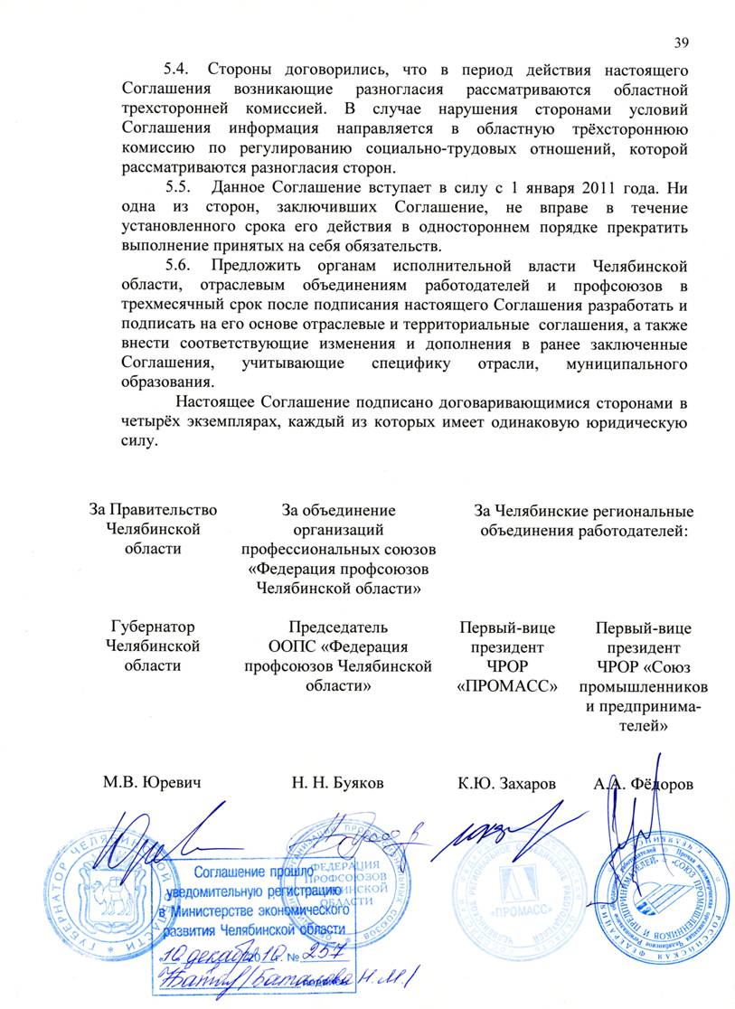 5.1. Стороны признают настоящее Соглашение региональным правовым актом социального партнерства, устанавливающим общие принципы проведения согласованной социально-экономической политики в Челябинской области на годы, и принимают на себя обязательства соблюдать его условия.