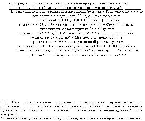 4. Структура образовательной программы послевузовского