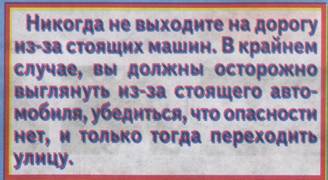 Прежде всего необходимо объяснить, чем опасна стоящая машина. Главная задача убедить ребенка, в том, что машина которая стоит, может быть опасна. Необходимо вовлечь в разговор детей, чтобы они поняли, что стоящая машина мешает. Чему? Смотреть, наблюдать, видеть, оценивать ситуацию. Они должны сами определить в чем опасность стоящей машины, и сделать вывод: ОНА ОПАСНА ПОТОМУ, ЧТО ИЗ-ЗА НЕЕ МОГУТ БЫТЬ НЕ ВИДНЫ ДРУГИЕ МАШИНЫ!!!