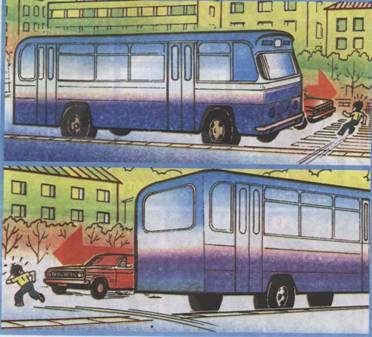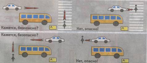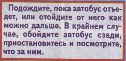 Как дополнение к этому выводу на экране показывается следующий слайд, иллюстрирующий почему нельзя обходить автобус до того момента пока он не отъедет от остановки.