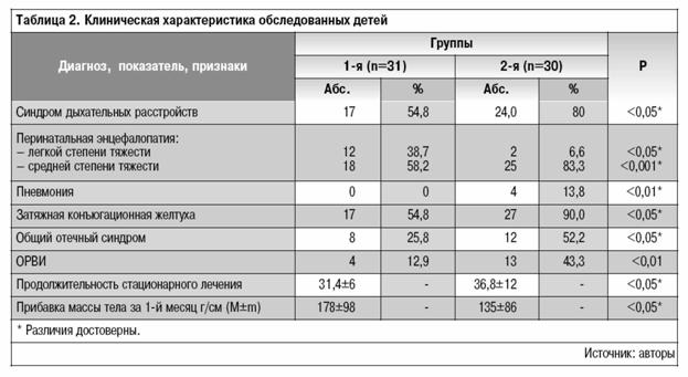 О большей степени незрелости детей 2-й группы свидетельствовала значительная частота общего отечного синдрома (р0,05) и затяжная конъюгационная желтуха (р0,05).