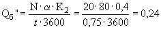 - время работы душевой установки в часах (принимают 0,75 часа).