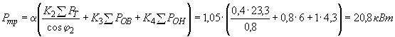 - коэффициент мощности для групп силовых потребителей. Для электродвигателей =0,7, для технологических потребителей =0,8.