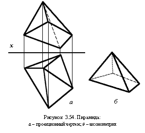 которого многоугольник, а остальные грани –треугольники с общей вершиной (рисунок 3.54). Пирамида называется правильной, если в основании лежит правильный многоугольник и высота пирамиды проходит через центр многоугольника. Пирамида называется усеченной, если вершина ее отсекается плоскостью.