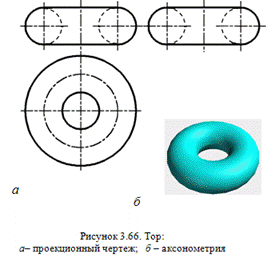 Тор – геометрический объект, образованный при вращении круга вокруг оси, не проходящей через его центр (рисунок 3.66).