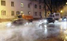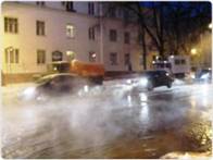 Горячая вода создала проблему для движения автомобилей и пешеходов.