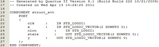 Рис 2.1.10.2. Фрагмент файла декларации структурного автомата в виде компонента.