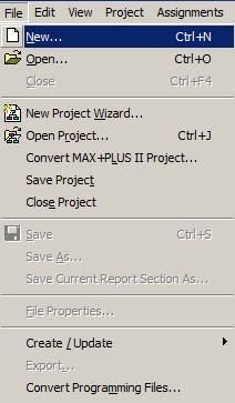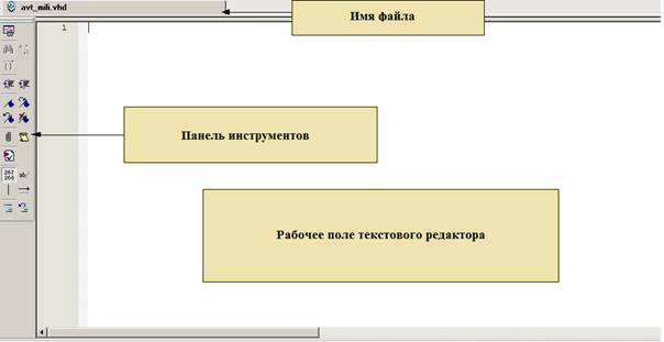 Вызов текстового редактора в пакете Quartus II осуществляется путем открытия текстового файла с помощью пиктограммы