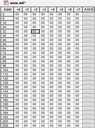 Рис. 2.4.2.2. Фрагмент окна редактирования файла инициализации памяти mem. mif