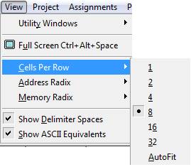 С помощью опции Cells Per Row из меню View можно изменить количество отображаемых на одной строке ячеек памяти.