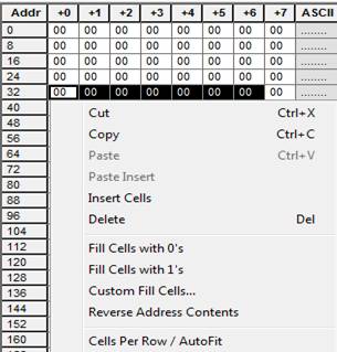 Так, выполнение команды Fill Cells with 0’s приведет к заполнению выделенного диапазона памяти нулями.