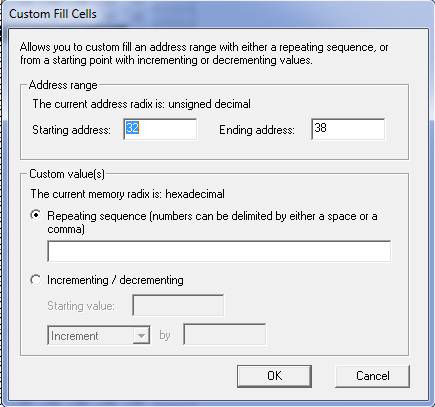 Рис. 2.4.3.2. Окно специализированного заполнения диапазона адресов памяти