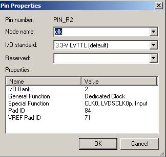 Рис. 2.6.2.1. Пример назначения контакта для сигнала clk
