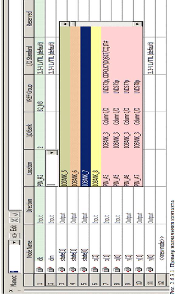 Назначение контактов ввода/вывода в окне All Pins list графического редактора, выполните следующим образом.