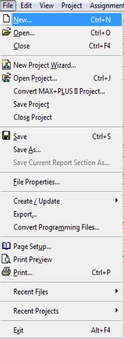 Рис. 3.4.1. Выпадающее меню команды File менеджера проекта