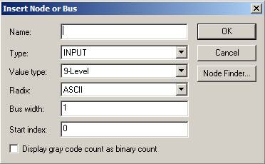С помощью указанных кнопок можно упорядочить имена в списке выбранных узлов. Чтобы закрыть окно Node Finder, нажмите кнопку OK. На экране вновь появится уже заполненное окно вставки узла или шины. Закройте окно таким же образом, нажав кнопку OK. После этого выбранные имена появятся в поле имен редактора временных диаграмм, в том самом порядке, в каком они были сформированы в списке выбранных узлов.