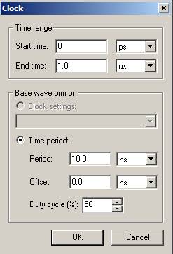 на панели инструментов редактора временных диаграмм (см. рис. 3.4.3.). Появится окно Clock, показанное на рис. 3.6.4.2.1.