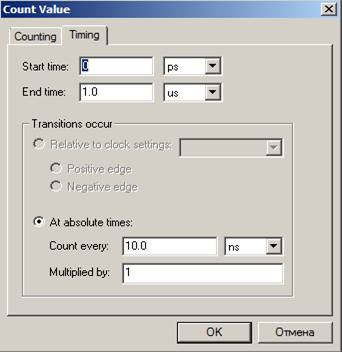 на панели инструментов редактора временных диаграмм. Появится окно Count Value, изображенное на рис. 3.6.4.3.1.
