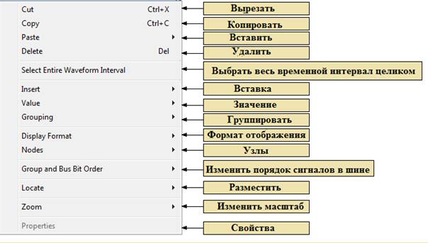 Рис. 3.6.5.1. Вид контекстного меню, используемого для редактирования временных диаграмм