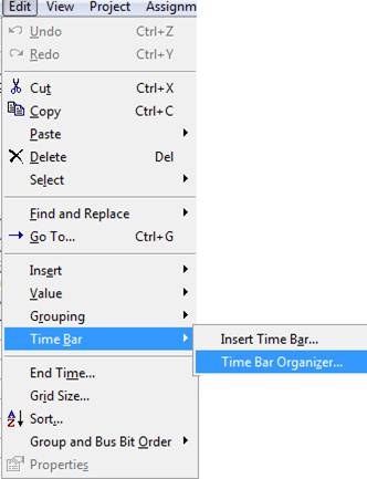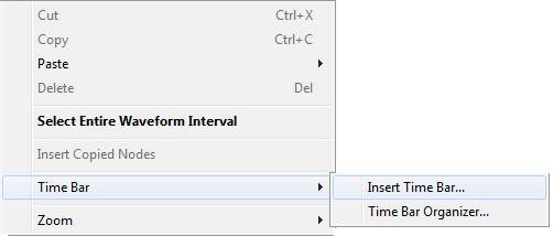 3. Указать курсором мыши строку временная метка (Time Bar), после чего в выпадающем меню выполнить команду вставки временной метки (Insert Time Bar…), как показано на рис. 3.6.6.6.