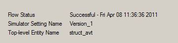 В разделе Legal Notice содержится информация о лицензионном соглашении. В разделе Flow Summary содержится текущий статус процесса моделирования, дата и время начала моделирования, имя файла с установками для моделирования и имя моделируемого модуля. Содержимое окна Flow Summary для рассматриваемого примера приведено на рис. 3.8.3.