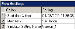 В разделе Flow Setting содержится информация о текущих установках процесса моделирования. Окно Flow Settings для рассматриваемого примера приведено на рис 3.8.4.