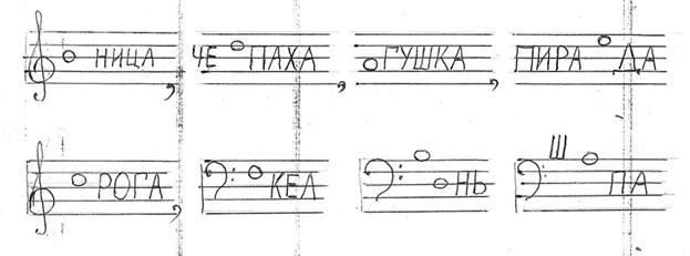 Пользуясь ритмизацией стиха и лесенкой, даже самый скромный по своим возможностям ученик способен выучить любую одноголосную песенку. Разучивание песенки начинается с ритмизации стиха. Можно выделить два этапа данной формы работы: