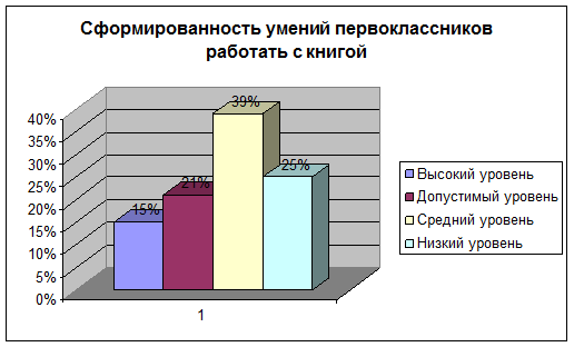 Во время прохождения практики в МОУ лицее № 19 мы провели исследование сформированности читательской самостоятельности первоклассников в 1 «В» классе и получила следующий результат: