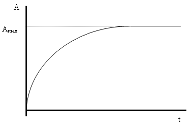 9. Выключить прибор. Привести в порядок рабочее место. По экспериментальным данным построить график зависимости A = f(t) (см. рисунок) и определить по нему Aмакс.
