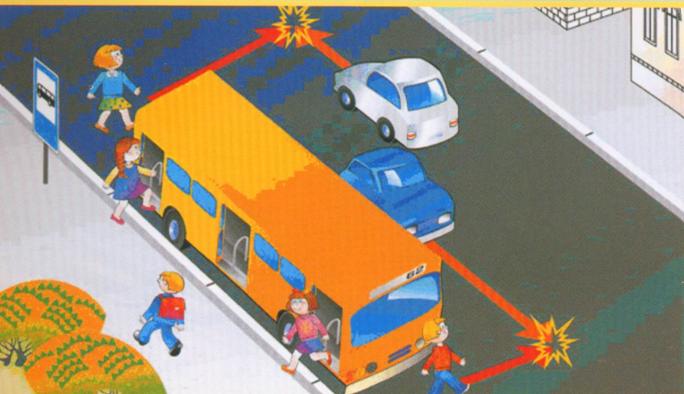 Не обходите стоящий автобус ни спереди, ни сзади!