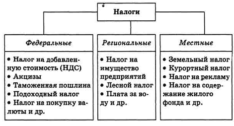 Пропорциональный налог — сумма налога пропорциональна доходам работников. Регрессивный налог — налог тем выше, чем ниже доход. Прогрессивный налог — налог тем выше, чем выше доход.Налоги подразделяются на прямые и косвенные.