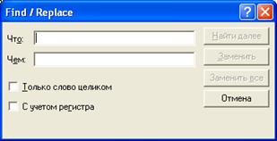 Рассмотрим команды меню Search (Поиск), которые также могут использоваться для редактирования текста. Команда Find ► Replace (Найти ► Заменить) и диалоговое окно Find Replace (рис. 11) подобны аналогичным в других текстовых редакторах.
