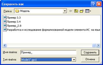 Для сохранения объекта «Модель» создадим папку МОДЕЛЬ. Далее выберем File ► Save As... (Файл ► Сохранить как...). В появившемся окне (рис. 12) вместо Untitled укажем Пример_1 и нажмем Сохранить ([Ctrl]+[S]). В последующем для открытия этой модели или какой-либо другой необходимо использовать команду File ► Open (Файл ► Открыть) ([Ctrl]+[O]).