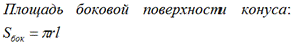 (Рассматривают развёртку боковой поверхности конуса с радиусом основания R и образующей l. Делают вывод: S=πRl.)