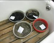Пробу на анализ из коробки отбирали шпателем или ложкой, предварительно перемешав почву на всю глубину коробки. Из пакетов почву высыпали на ровную поверхность, тщательно перемешивали и распределяли слоем толщиной не более 1 см. Пробу на анализ отбирали не менее чем из пяти мест одной пробы. Масса пробы - 30 г.