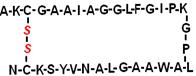 Для выяснения особенностей действия энтероцина В были синтезированы два пептида, последовательность одного из которых в точности соответствует зрелому (процессированному) энтероцину В, а второй представляет его укороченный дериват (В1). Аминокислотная последовательность этих пептидов представлена на рис. 4.