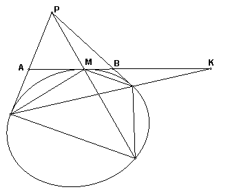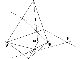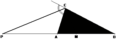 Проведем в треугольнике АВС биссектрису угла С и перпендикулярную к ней биссектрису угла, внешнего к С. Эти биссектрисы пересекают прямую АВ в точках Р и М. По известной теореме планиметрии