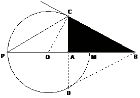 Можно также заметить, что если на чертеже точки С и Е совпадут, то прямая ВС станет касательной к окружности. Легко доказать, что и в этом случае СМ и СР останутся биссектрисами соответствующих углов. Треугольник АВС станет прямоугольным, тогда из подобия треугольников АСО и СВО следует: